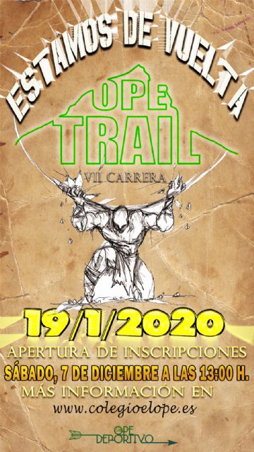 Apenas nos separan dos meses de la importante cita que nos llevará al Valle de Ricote, el próximo 19 de enero. Así será con motivo del VII El Ope Trail, que acogerá la 2ª cita puntuable del circuito Trail Tour FAMU 2020 sobre una distancia aproximada de 12km., y que el próximo sábado 7 de diciembre, a las 13:00h., abrirá el plazo de inscripciones a través de Alcanza Tu Meta.