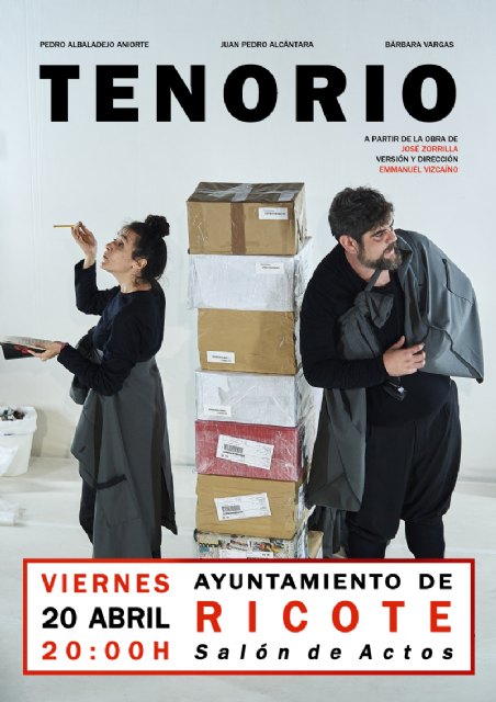 El próximo viernes 20 de mayo, a las 20 h. en el salón de actos del Ayuntamiento, se ofrecerá el espectáculo “Tenorio“, una obra de teatro cómica a partir del texto clásico de José Zorrilla.