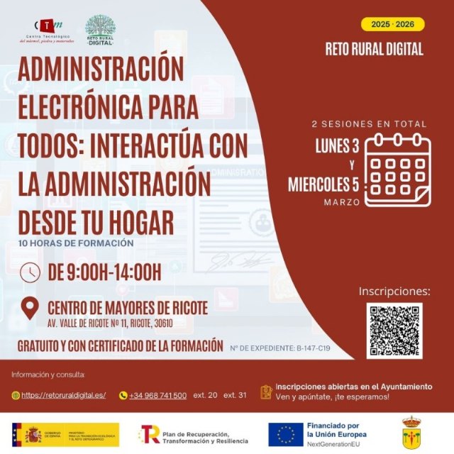 Corresponde al programa “Reto Rural Digital”, del Plan  de Recuperación,  Transformación y Resiliencia, impartido por el Centro Tecnológico del mármol, piedra y materiales.
